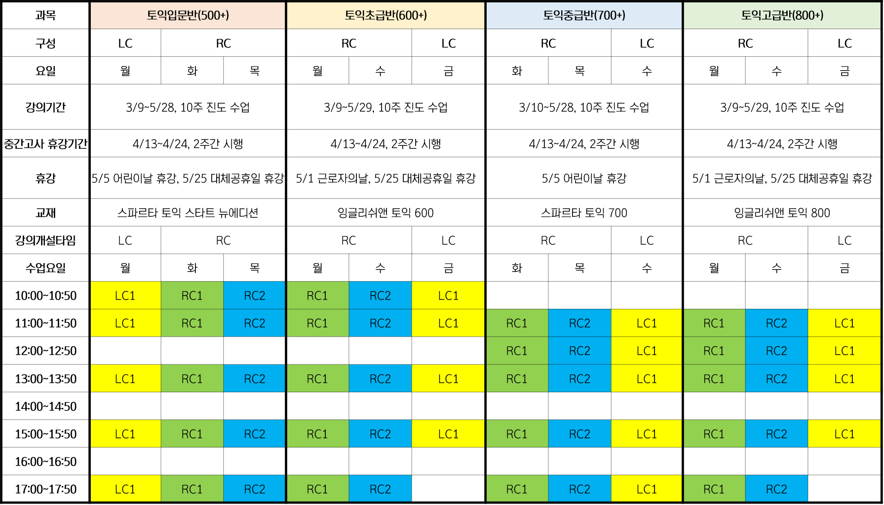 RISE 신입생 외국어특별프로그램 1학기 수강희망과목 설문